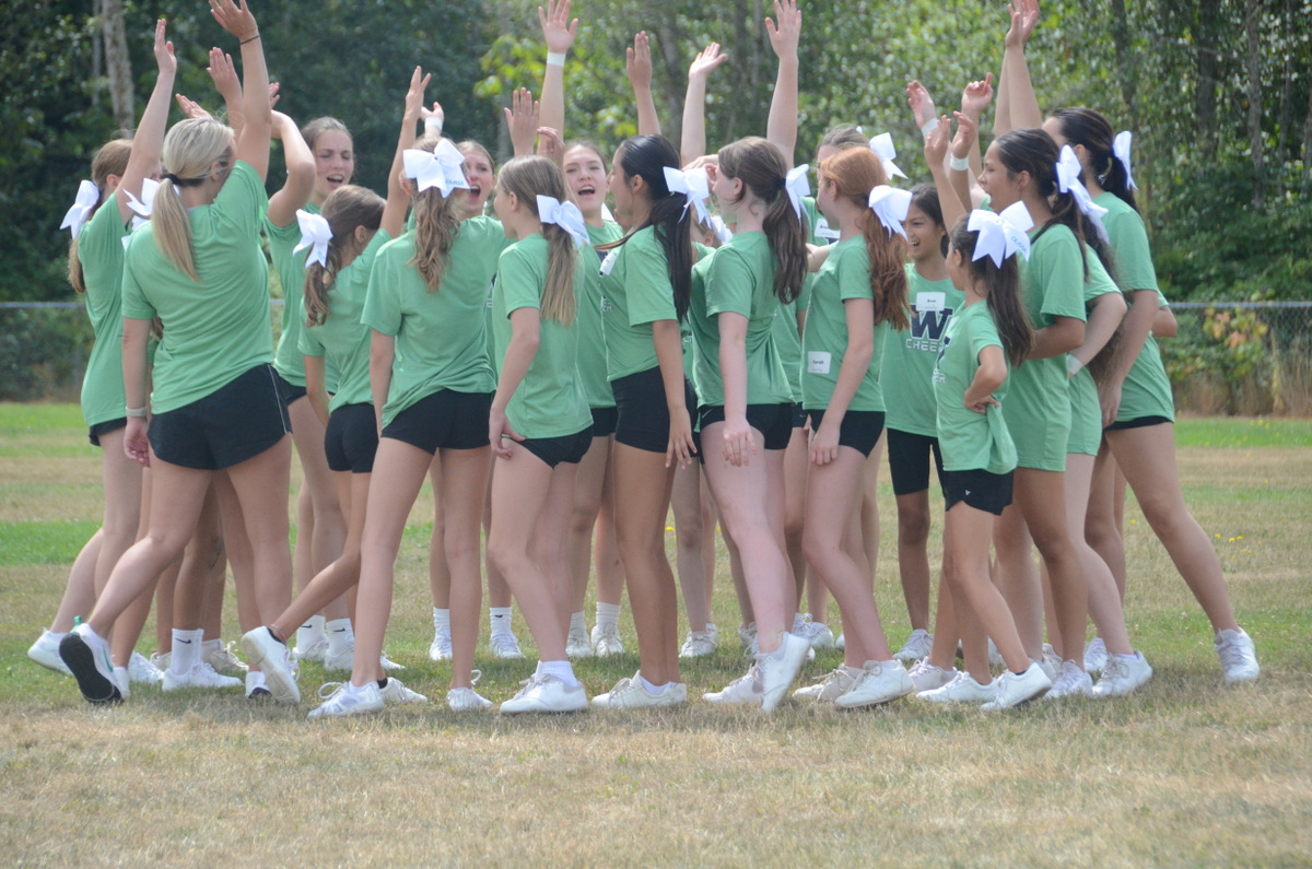 In addition to regular season activities, we coordinate special events throughout the season that we highly encourage all families to participate in โ including community events like the Celebrate Woodinville Parade and Jr. Falcon Night at a Woodinville High School Varsity Football Game, where our athletes cheer alongside the High School Cheerleaders.