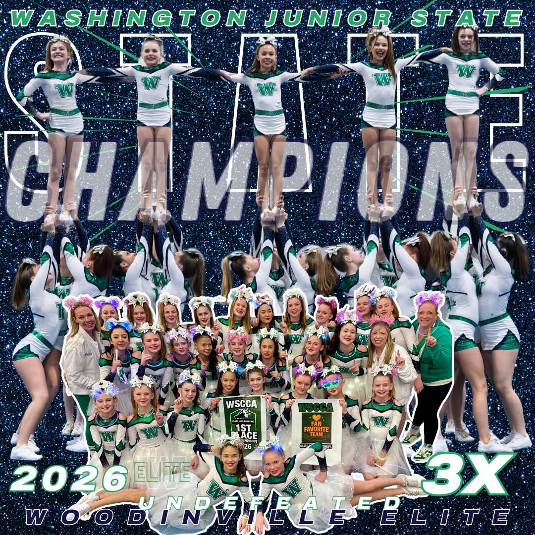 We are proud to be 3-Time Washington State Champions in the Traditional Rec Category, continuing to set the standard for youth competitive cheer in our region.